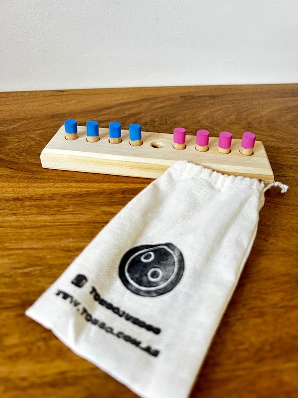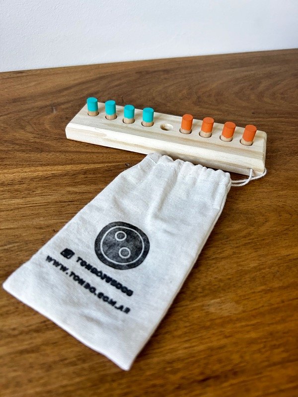 Un clásico desafío de lógica y paciencia hecho en madera. El objetivo es intercambiar por completo la posición de las fichas de un lado al otro, moviéndolas siempre hacia adelante. En cada turno podés avanzar a un espacio vacío o saltar una sola ficha para caer en el lugar libre.